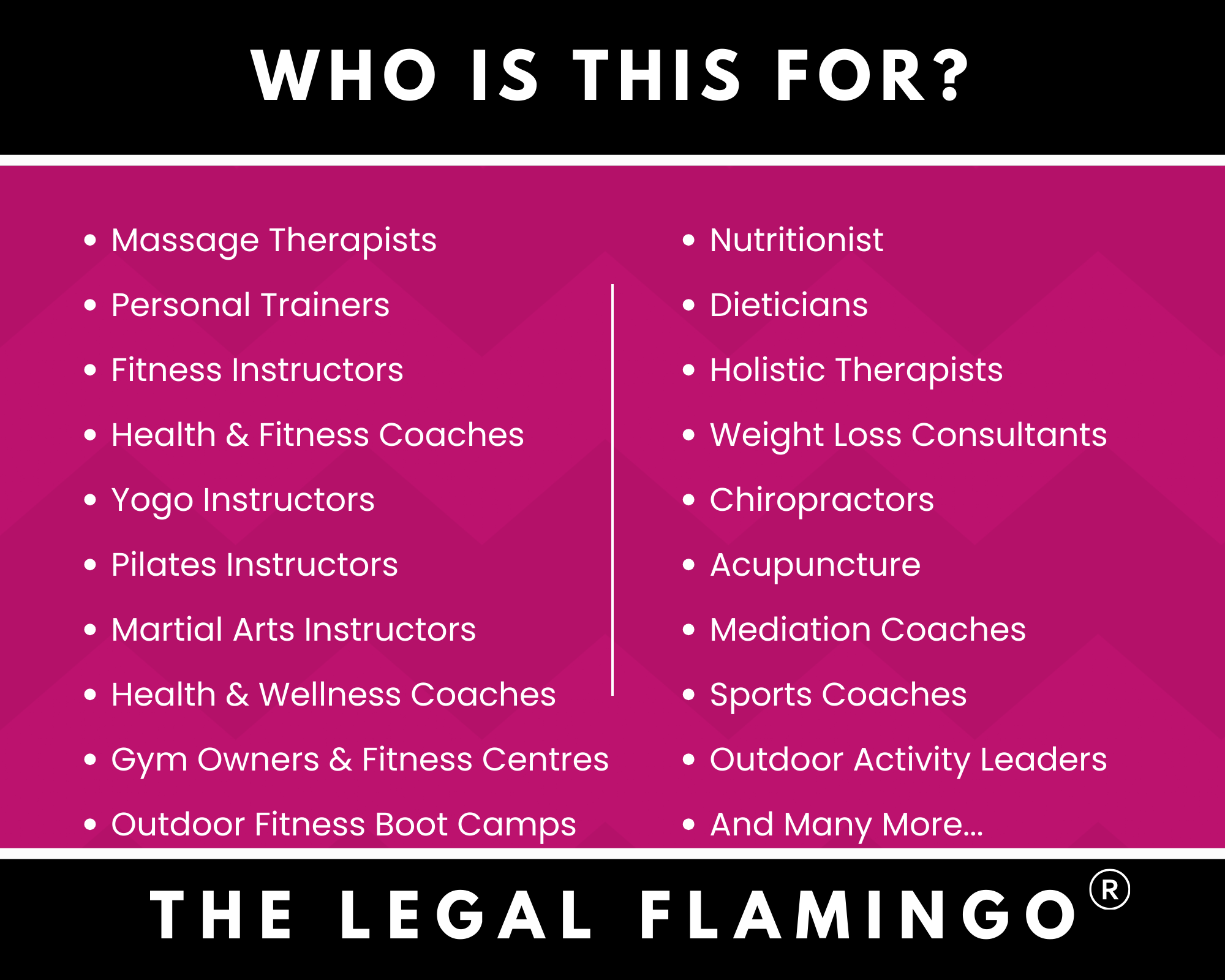 As a professional in these fields - whether you’re a personal trainer, massage therapist, nutritionist, gym owner, yoga instructor, or holistic therapist—your work goes beyond physical transformations and well-being. You’re also responsible for protecting your business, ensuring client safety, and maintaining compliance with ever-evolving legal and industry standards.